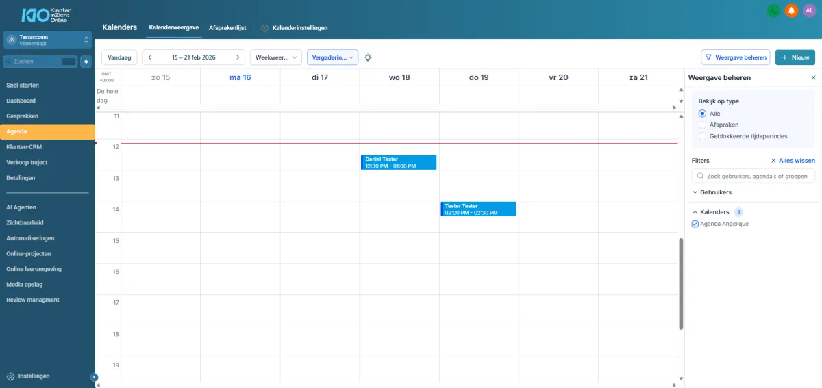 Een afspraak is niet alleen een moment in je agenda. In KIO is het gekoppeld aan je volledige klantoverzicht.